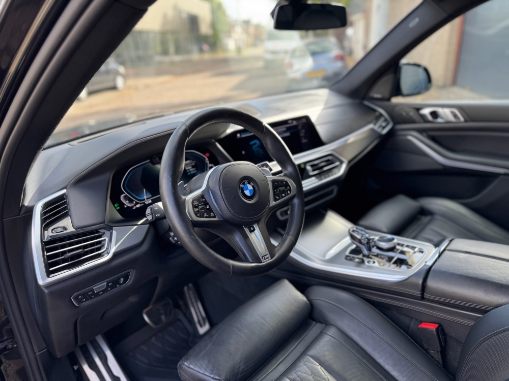 Zeer complete BMW X5 xDrive45e M Sport uit oktober 2020 in Black Sapphire Metallic, waaronder BMW Laserlight, Sky Lounge panoramadak, massagezetels, Merino leder, Soft-Close. Dealer onderhouden, Schadevrij!
